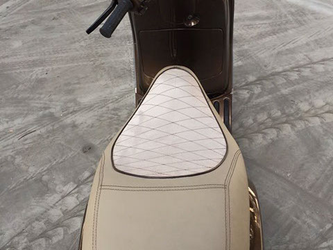 Ādas sēdeklis, mazais vējstikls, aizmugurējā bagāžas stiprinājuma reste.