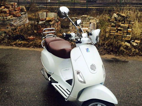 Vespa LXV- rets un īpašs modelis LXV 125, Balta pērle, brūns ādas sēdeklis, labā stāvoklī