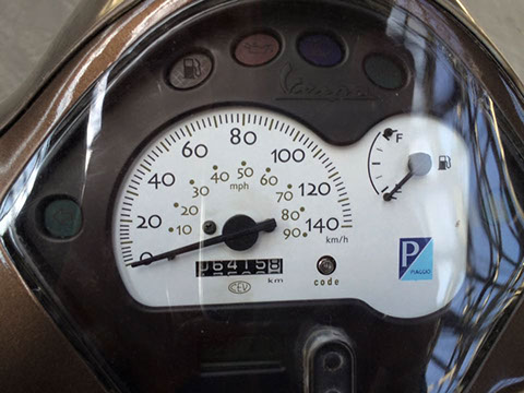 Vespa LXV- rets un īpašs modelis LXV 125, Balta pērle, brūns ādas sēdeklis, labā stāvoklī